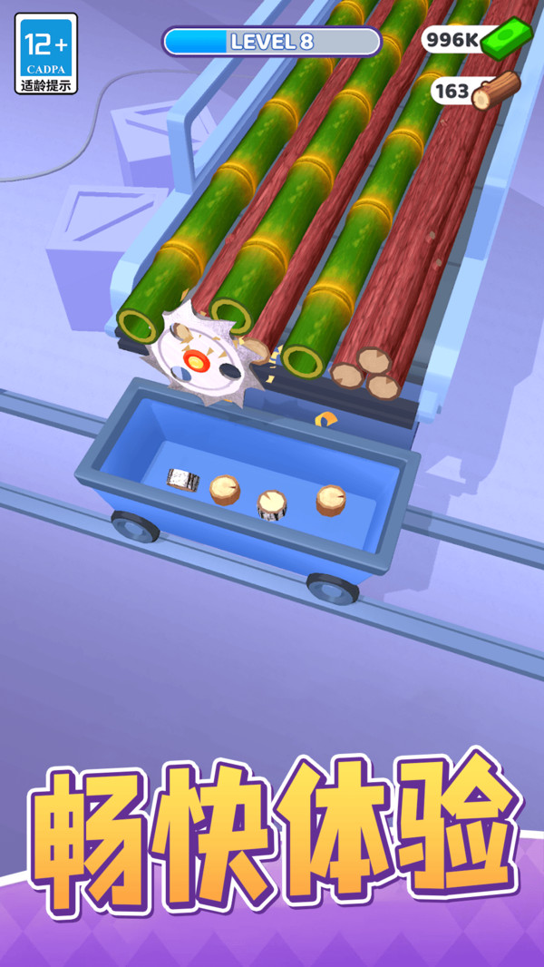 1.操作切割:点击屏幕调整切割器速度,速度越快效率越高,玩家需在节奏掌握中找到最佳状态,完成更多木材的切割目标。