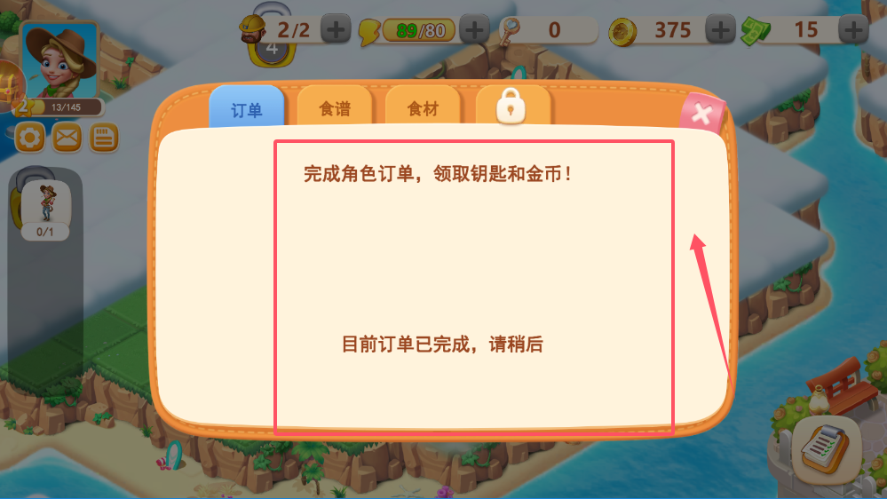 2、订单管理要作为日常重点,定期查看并完成角色订单获取钥匙和金币奖励,如果订单已全部完成,可以先进行其他经营活动,同时留意新订单的刷新时间以便及时接取。