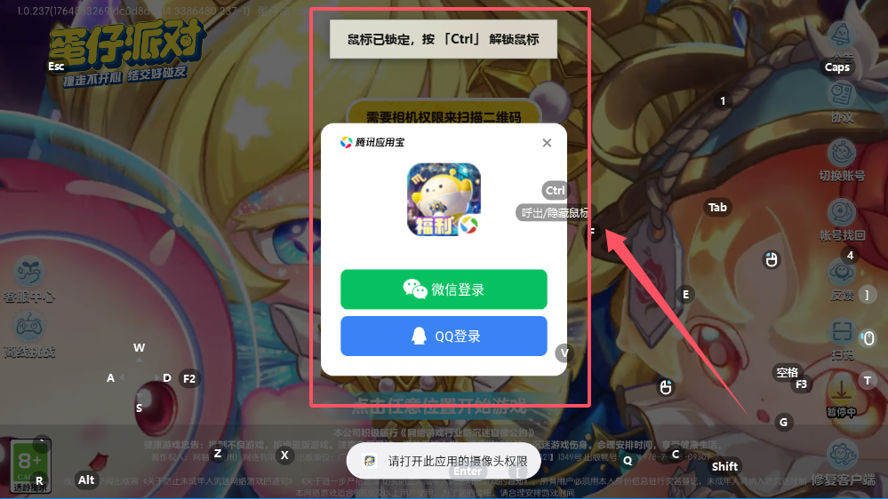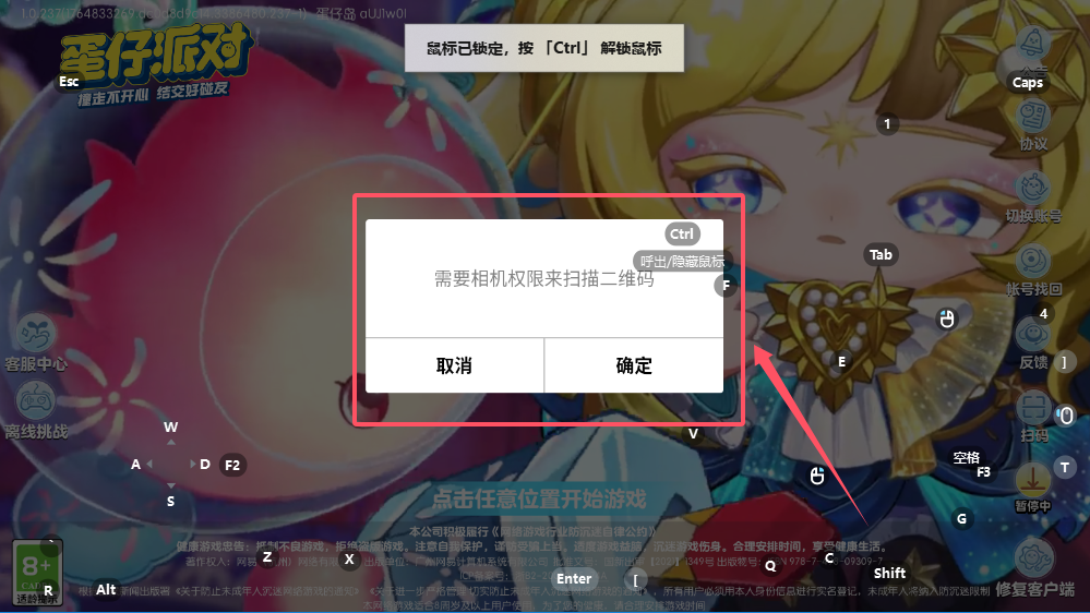 3、授权相机权限后,您就可以使用手机上的蛋仔派对APP扫描屏幕上的二维码了,扫描成功就能快速登录游戏,整个过程挺简单的,只是第一次使用时需要授权一下权限而已。