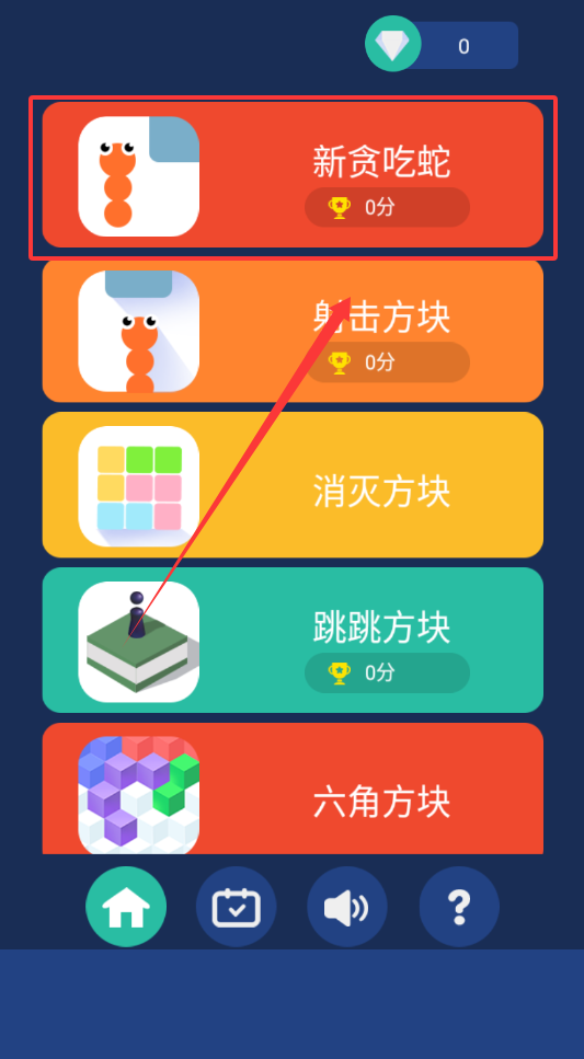 2、屏幕上方有几种方块和对应的分数,比如射击方块、跳跳方块和六角方块。