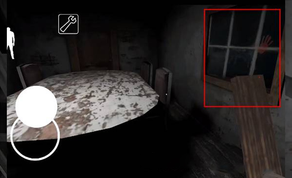 2、拿到手柄后,从那个带有暗红色手印的窗户翻出去。这个窗户是通往后院的必经之路,小心别被其他东西干扰。