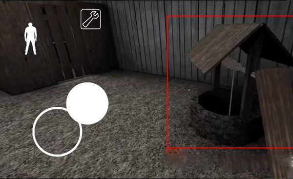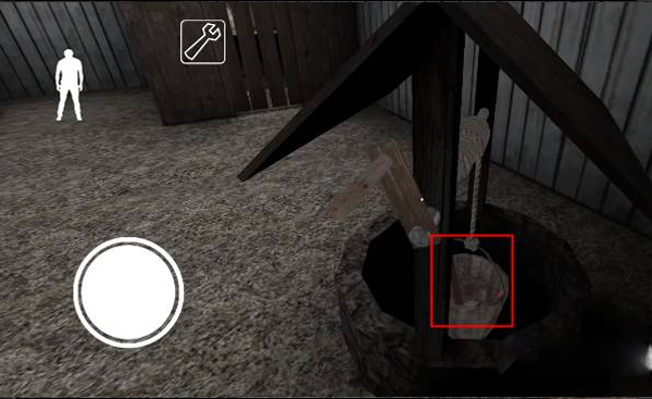 3、来到后院会看到一口旧水井,将刚才找到的木柄装到井架上。然后转动手柄把井底的水桶慢慢摇到地面上来。