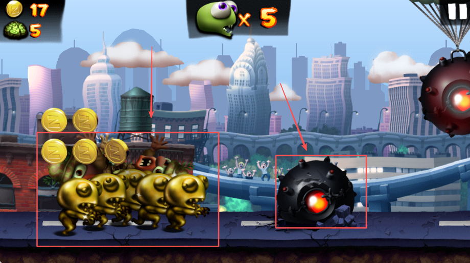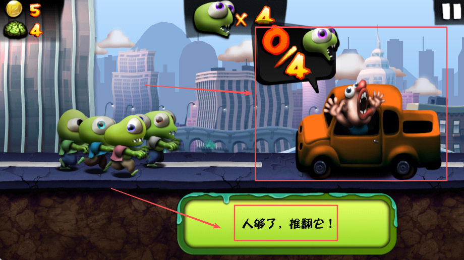 3、聚集四个僵尸后点击推翻按钮,集体行动突破特定障碍物,了解不同障碍物所需的最低僵尸数量。