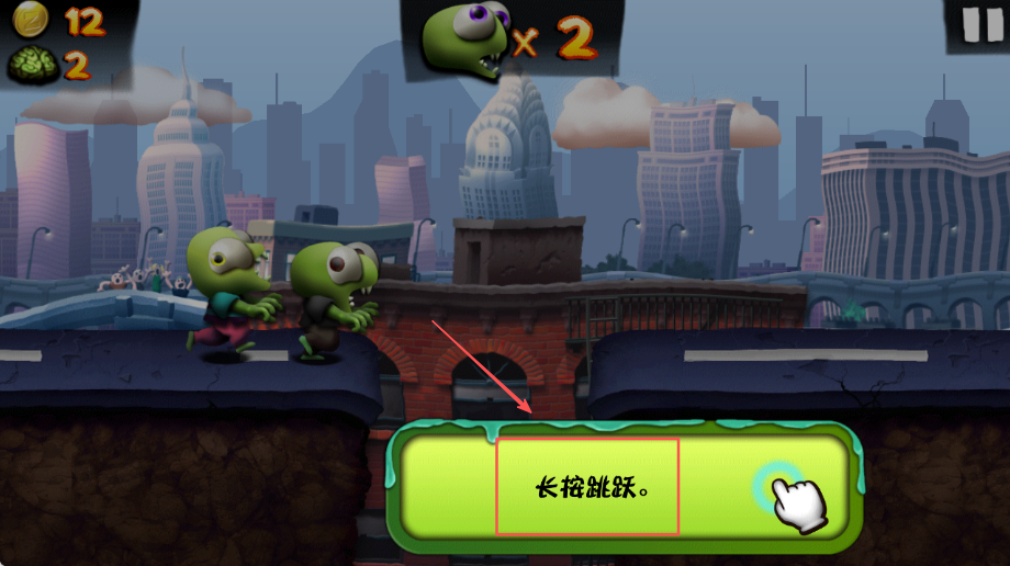 1、长按跳跃按钮控制角色跳跃前进,根据障碍物距离调整按压时间,掌握不同长度跳跃的技巧要领。