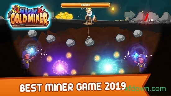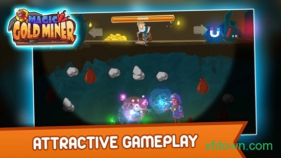 1、操控矿工在合适角度放下抓手,精准计算抛物线轨迹抓取地下金矿,通过收集黄金与宝石积累关卡所需金币。