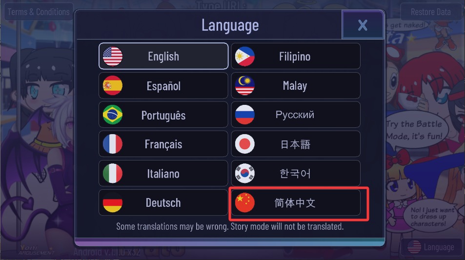 2、在弹出的语言列表中,找到并点击中文选项进行切换。这样游戏内的所有文字说明就会变成你熟悉的语言。