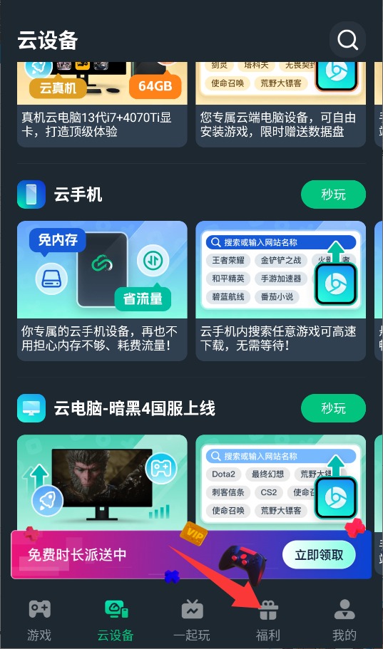 2、接着在主界面中找到福利中心或每日奖励入口并点击。这里通常提供登录奖励、任务补偿等常规福利内容。