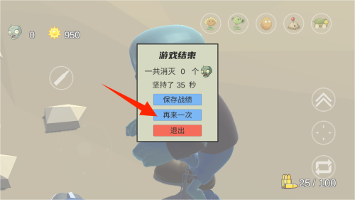 4、当角色生命值被僵尸攻击耗尽时,系统将立即判定战斗失败并显示重新挑战选项。