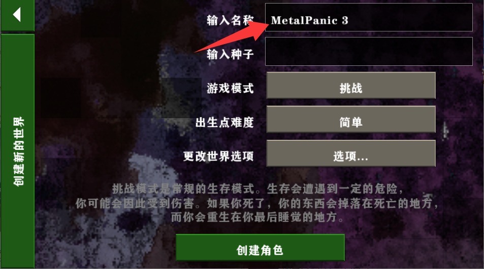 3、然后为这个新世界输入一个你喜欢的专属名称。这个名字将作为该存档的标识,方便你后续识别与管理。