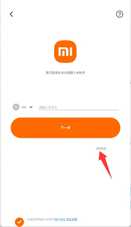 3、进入界面后在登录方式中选择“密码登录”,进入传统的账号密码验证界面。