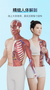 2.三维交互模型:应用内部设有可交互的3D身体模型,可以让用户通过移动手机,观察模型的不同角度,深入了解每个身体部位的具体结构。