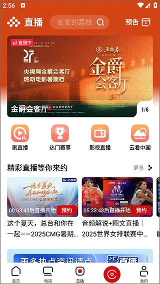 3、【直播】提供了热门赛事直播,影视直播等多种视频直播,免费收看