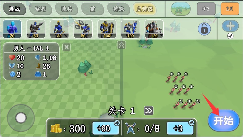 第8关:50野蛮人,分散开冲过去对面就没办法了