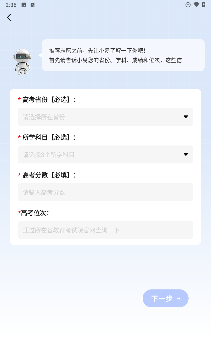 1、在本站下载并打开AI报志愿app。