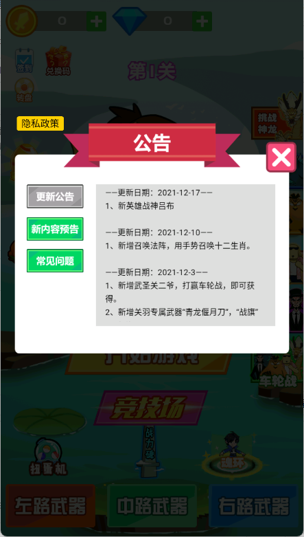 2、进入游戏主界面后,查看“公告”或“活动”栏,了解版本更新、福利领取等信息。