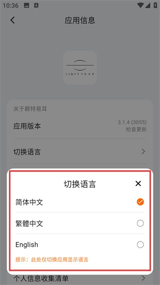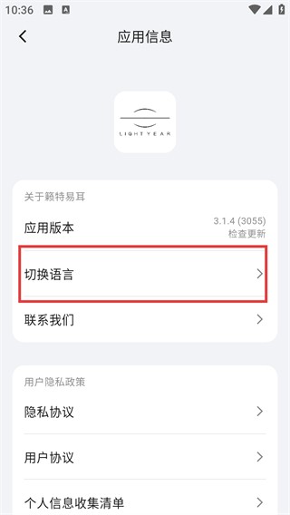 3、在应用信息页面找到【切换语言】选项并点击,就能打开语言选择的弹窗,准备更换应用语言啦。
