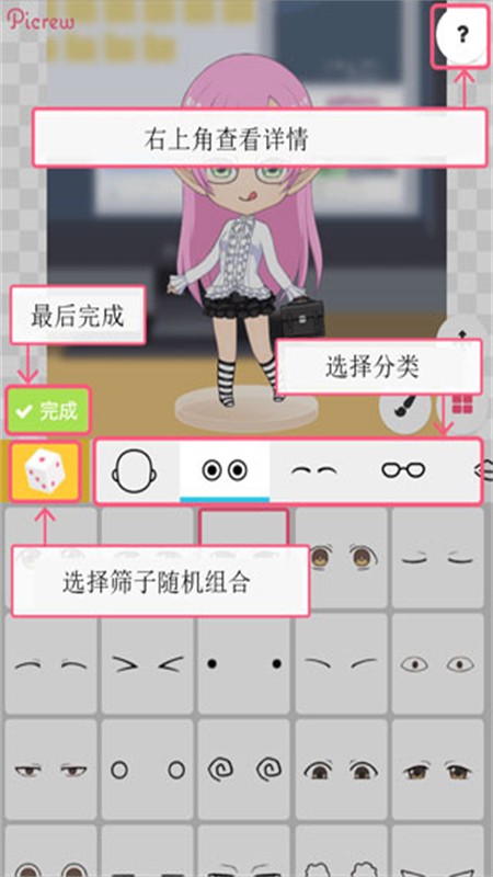 2、大家可以根据自己的喜好对人物的眼睛、鼻子、头发、头饰、服装等进行修改;