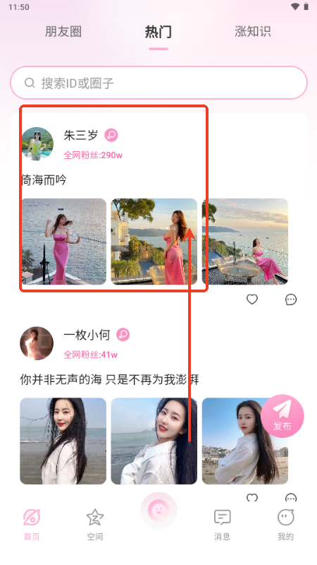 1、点击热门版块栏目,找到自己感兴趣的博主用户,点击发私信。