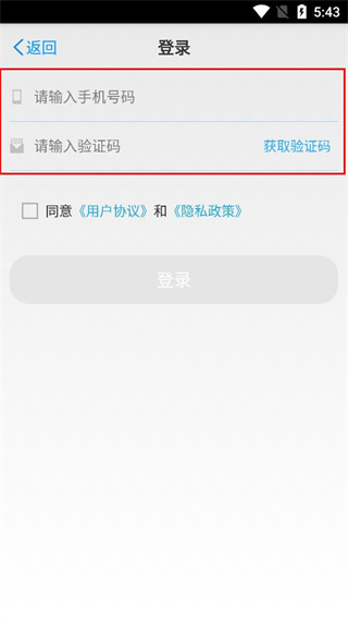 3、在登录界面的对应输入框内,依次填写手机号码,再填写获取到的验证码。