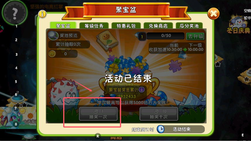 2、在聚宝盆抽奖界面,点击抽奖按钮积累次数,这些次数会直接影响瓜分奖池的排名,抽奖过程中可能触发高额钻石奖励,奖池累计的钻石数量会实时呈现。