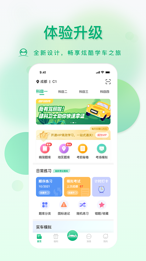 肆科卫士是一款非常实用的驾考辅助软件,能帮助到所有需求考驾照的用户。软件覆盖科一到科四全流程,有最新交规题库,能刷题、进行线上模拟考试,做错的题目会自动收录进错题本。而且科三有3D考场模拟,能练习灯光、自由驾驶。还支持学习打卡计时,数据同步至平台。考完试还能查考试成绩和所考路线,是帮助学员备考练车,教练跟进学习进度的实用驾考学习软件。