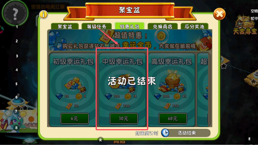 4、前往特惠礼包与兑换商店,购买不同档位的幸运礼包获取钻石、幸运金币,再用幸运金币兑换植物进阶书、金币、培养液等道具,兑换时需注意各道具的限购次数与消耗数量。