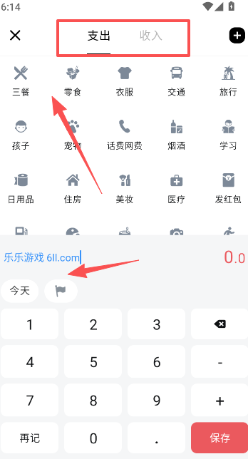 2、设置记账的支出和收入明细,选择你要记录的部分,比如零食、衣服或是用餐等方面,方便之后总账。