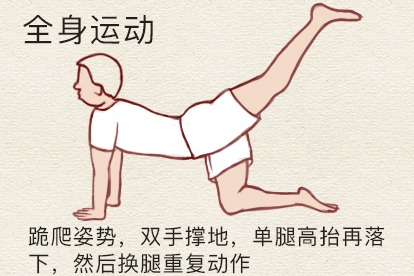 3、采用跪趴姿势,双手撑地,单腿高台再落下,反复重复该姿势。