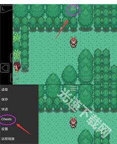 1、打开gba模拟器,运行游戏后,点击以下指示的图标,选择Cheats