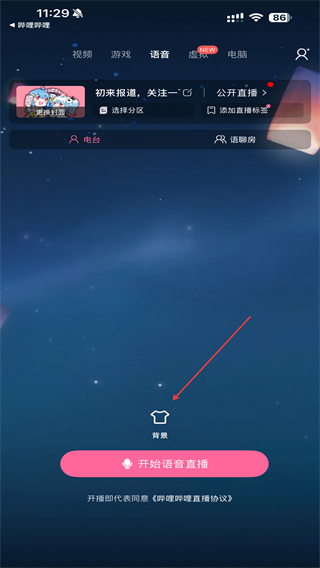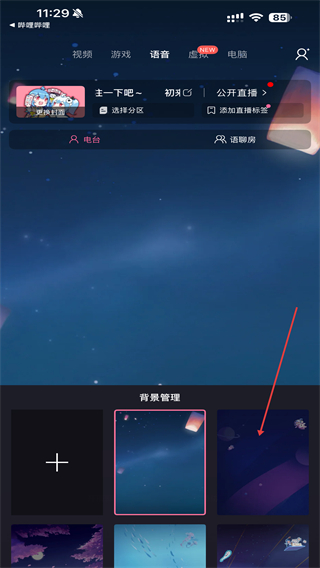 2、进入语音的页面内,点击下方背景的按钮。