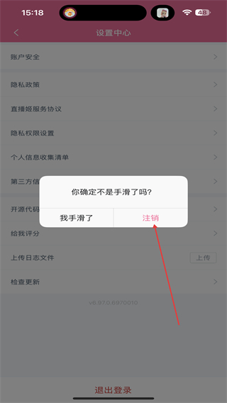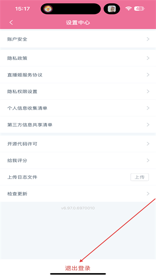 3、进入设置中心的页面内,点击最下方退出登录的按钮。