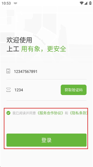 3、填写收到的短信验证码,勾选协议同意选项后,点击登录按钮完成登录操作。