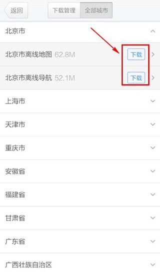 建议您直接下载需要的城市地图或全国地图并安装到手机上。本地保存地图后,您既可以避免下载地图产生的流量,也可以加快地图的浏览速度。