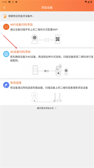 3、在添加设备的方式选择页面,选择4G设备扫码加。