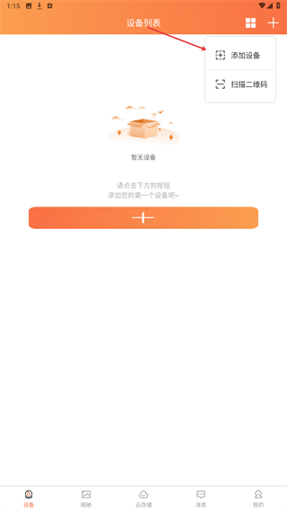 2、弹出操作选项后选择添加设备,进入设备添加方式页面。