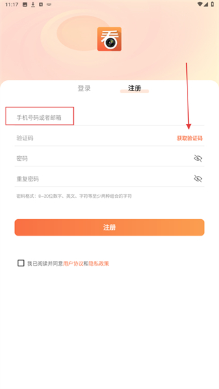 2、在注册页面内,输入注册的手机号并点击获取验证码。