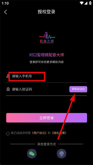 3、填写需要登录的手机号,点击上方的获取验证码。