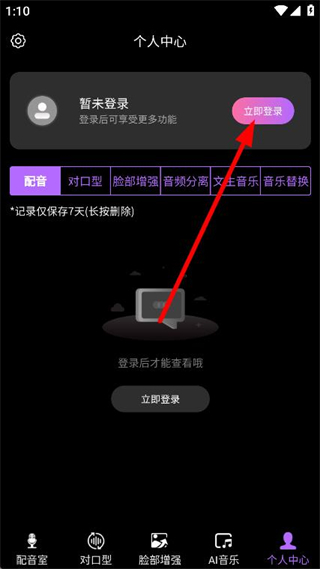 2、进入个人中心页面后,点击上方的立即登录按钮。