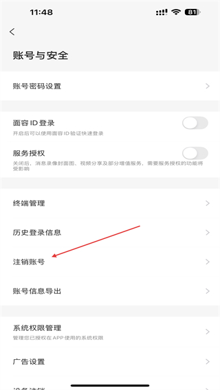4、进入该页面内,找到并点击注销账号即可完成。
