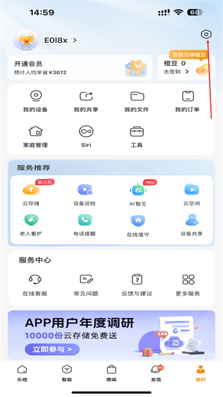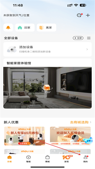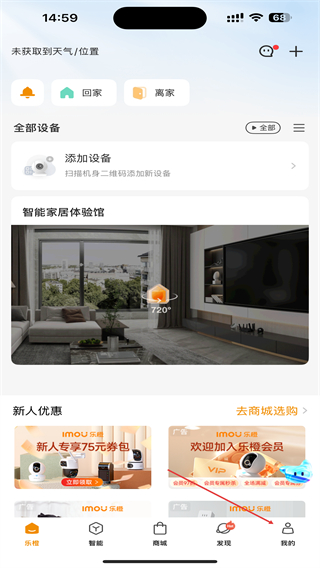 1、在乐橙主界面点击底部导航栏的我的选项,进入个人中心页面。