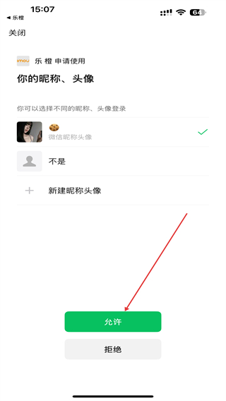 3、在微信授权的页面内,选择微信号后点击允许按钮即可。