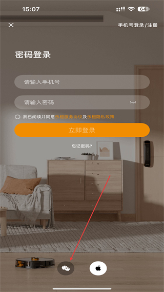 2、进入密码登录的页面内,点击最下方微信登录的图标。