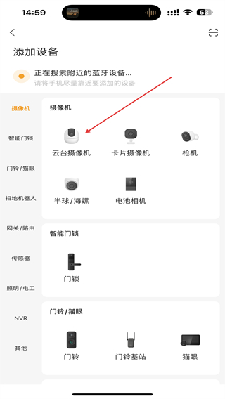 3、进入添加设备的界面内,在摄像机下选择并点击要添加的设备。