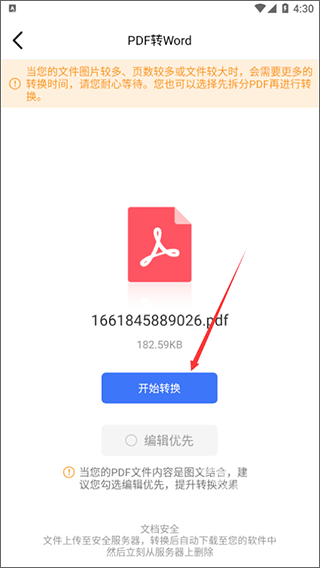 3、最后点击“开始转换”等待数秒即可获得Word文件。