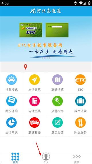 1、打开河北高速通软件,点击页面底部的个人选项,进入用户登录界面。