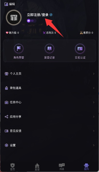 3、在个人中心页面上方找到“注册/登录”入口,点击进入账号验证界面。