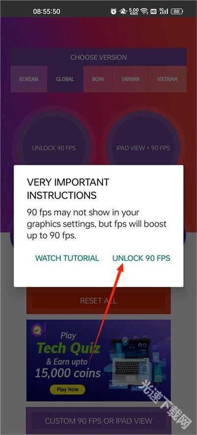 2、如果设备是Android 11,用户需要授予额外的权限,然后通过点击按钮解锁90 FPS。