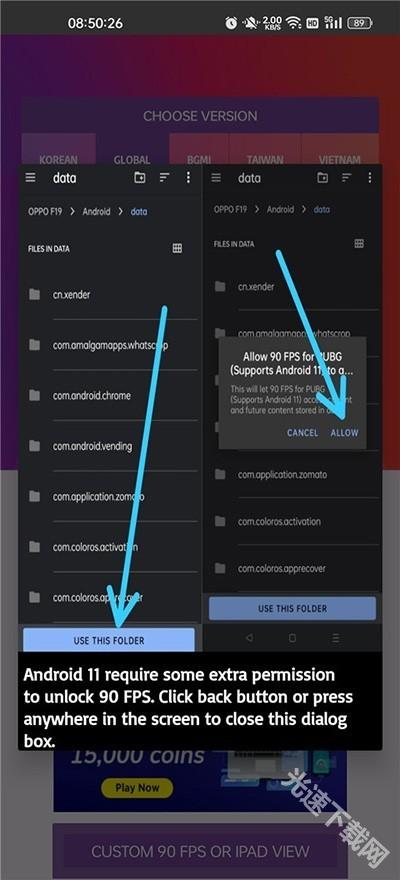 3、通过“使用此文件夹”按钮授予权限后,可解锁90 FPS,提升游戏体验。