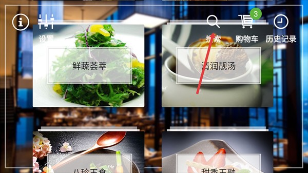 1、点击右上角的“搜索”图标,进入菜品搜索页面。