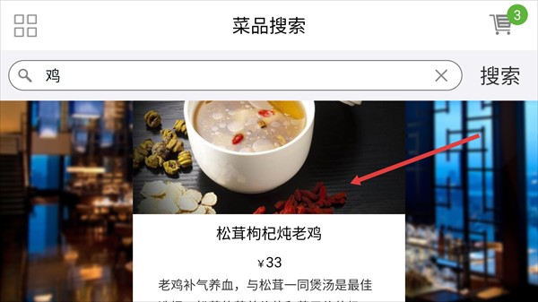 2、输入目标菜品名称,进行搜索。